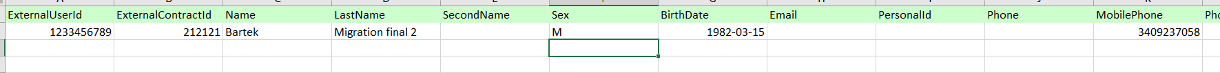 A single column is intended for a separate guest or member (in the case of members, more lines are allowed only when we migrate more than 1 contract for a given member. Then we give the same externaluserid, but change the externalcontractID. User data is then left unchanged and we only work on the data regarding the contract).