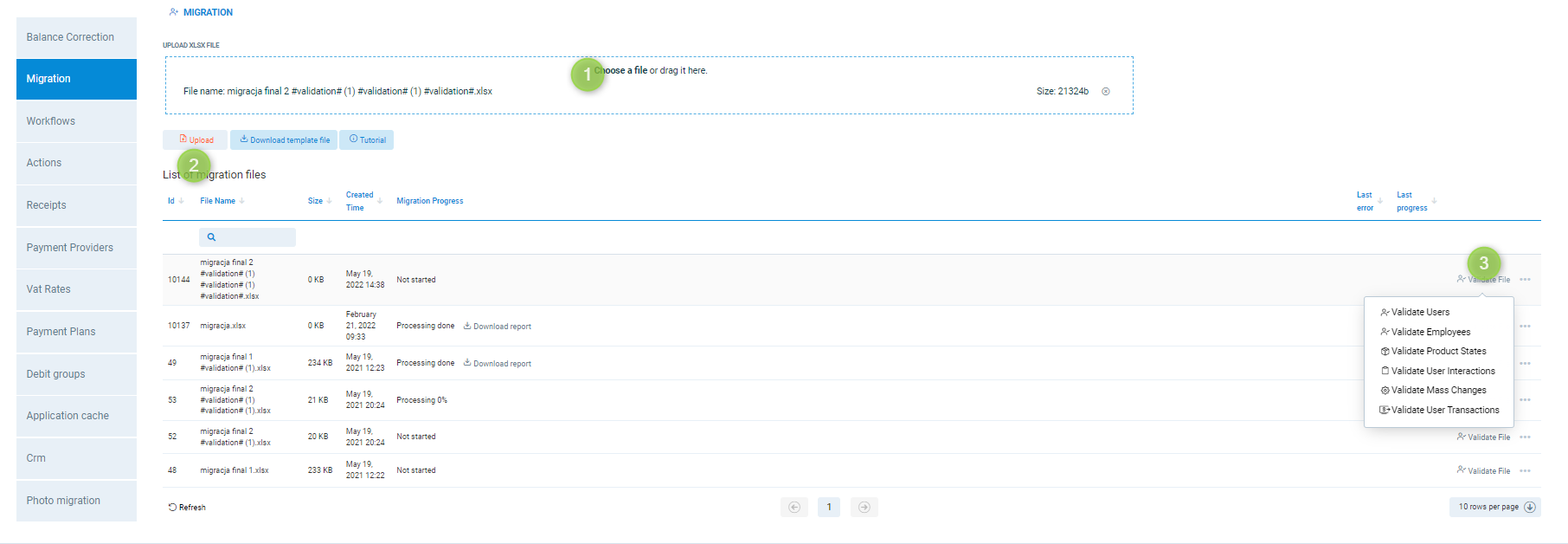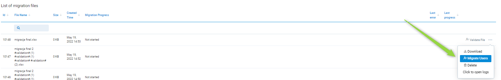- Once the file has been successfully validated, you can start the migration and the option "Migrate Users" will be possible,