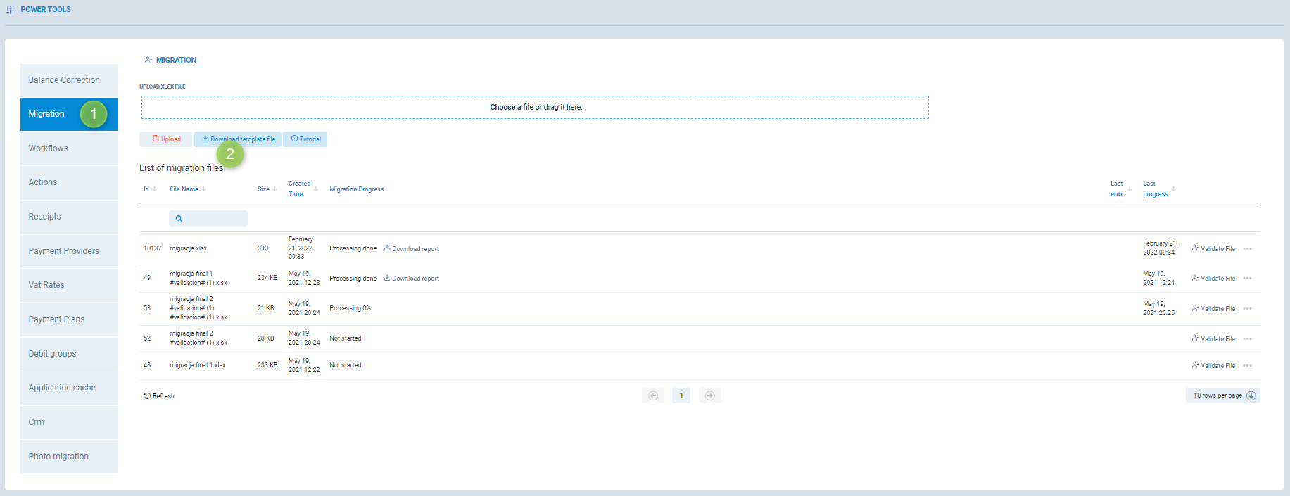 - To create and upload migration file go to the PGM -> Settings -> Support tools -> Migration