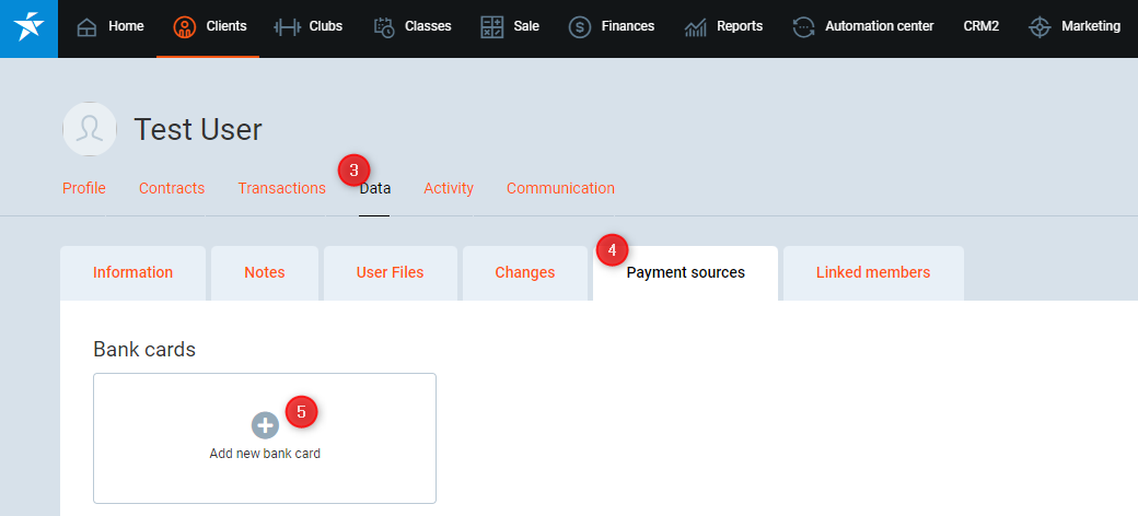 In this article, you will find how to add a new credit card to Member profile. If you would like to add other payment source than credit card, go to this article. This article also explains how to assign that payment source to a Contract.