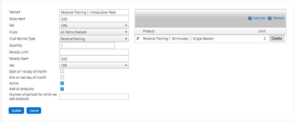 Contract extras [Membership add-ons] can have a form of Products or Services which can be automatically added to a Contract. It can be i.e. a first session with Personal Trainer who will show a new member around the club.