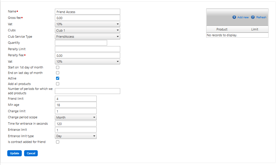 Logic: Your selection here changes the rest of the form. It will show or hide the Products grid, the Class Access list, the Friend Access panel, or the Booking Limits Override panel.