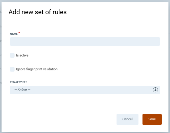Configure the Ignore finger print validation and Penalty fee settings as needed.