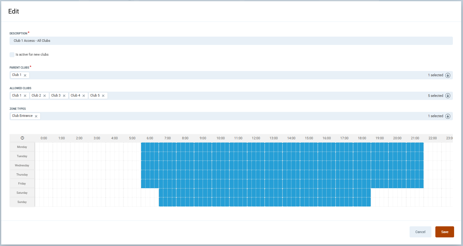 Enter a Description for the rule (e.g., "All Clubs - 24/7 Access").