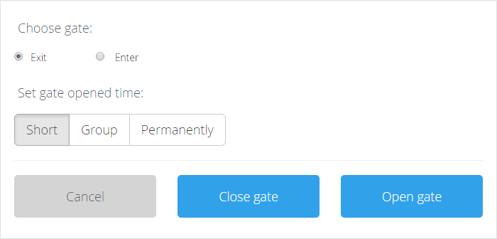 2. Select the gate - Exit or enter - and time - for how long it should stay opened or closed.