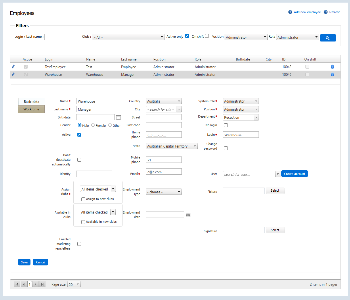 - Available in new clubs - you can decide to have a new employee automatically assigned to all clubs created in the future. This feature is available since R.88 system version.
