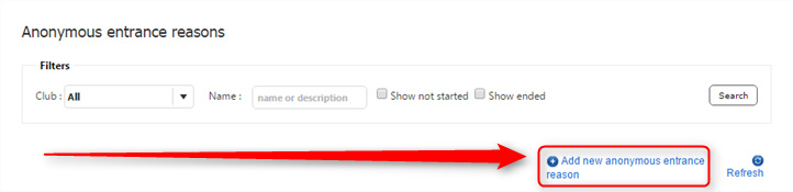 2. Click on the “Add anonymous entrance reason” button.