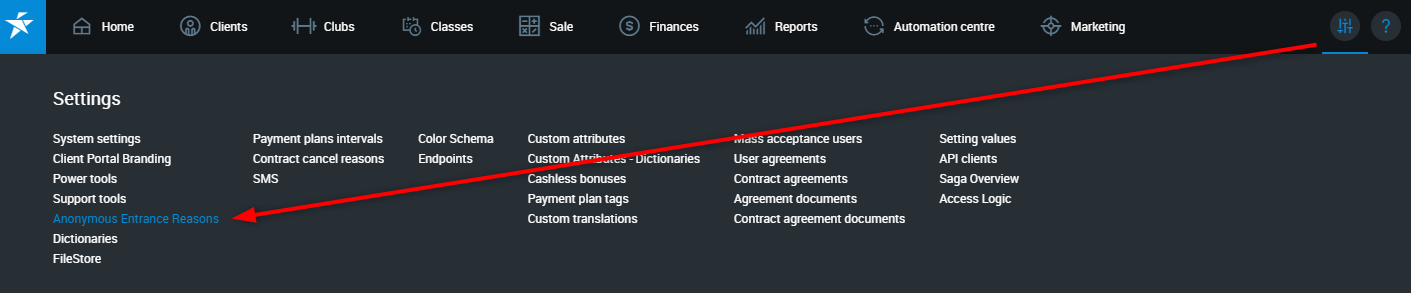 1. Go to the PGM-> Settings -> Anonymous Entrance Reasons.