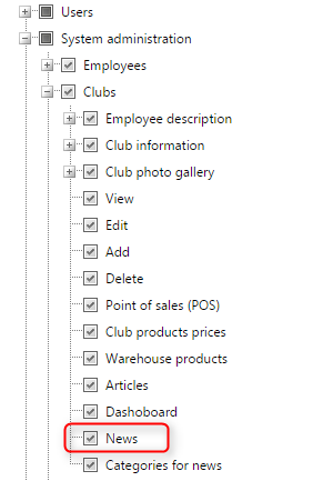 System administration -> Clubs -> News