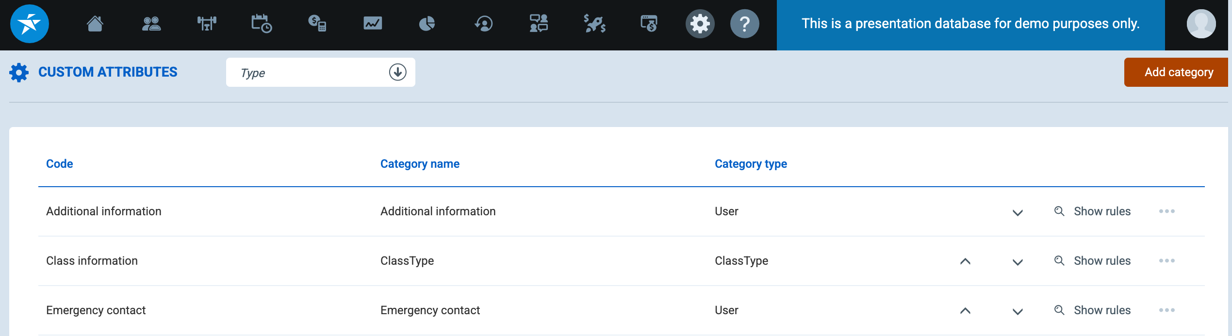 Object Type: Specifies which system entity the category of attributes applies to (e.g., User, Club, Employee, Payment Plan, Contract, ClassType).