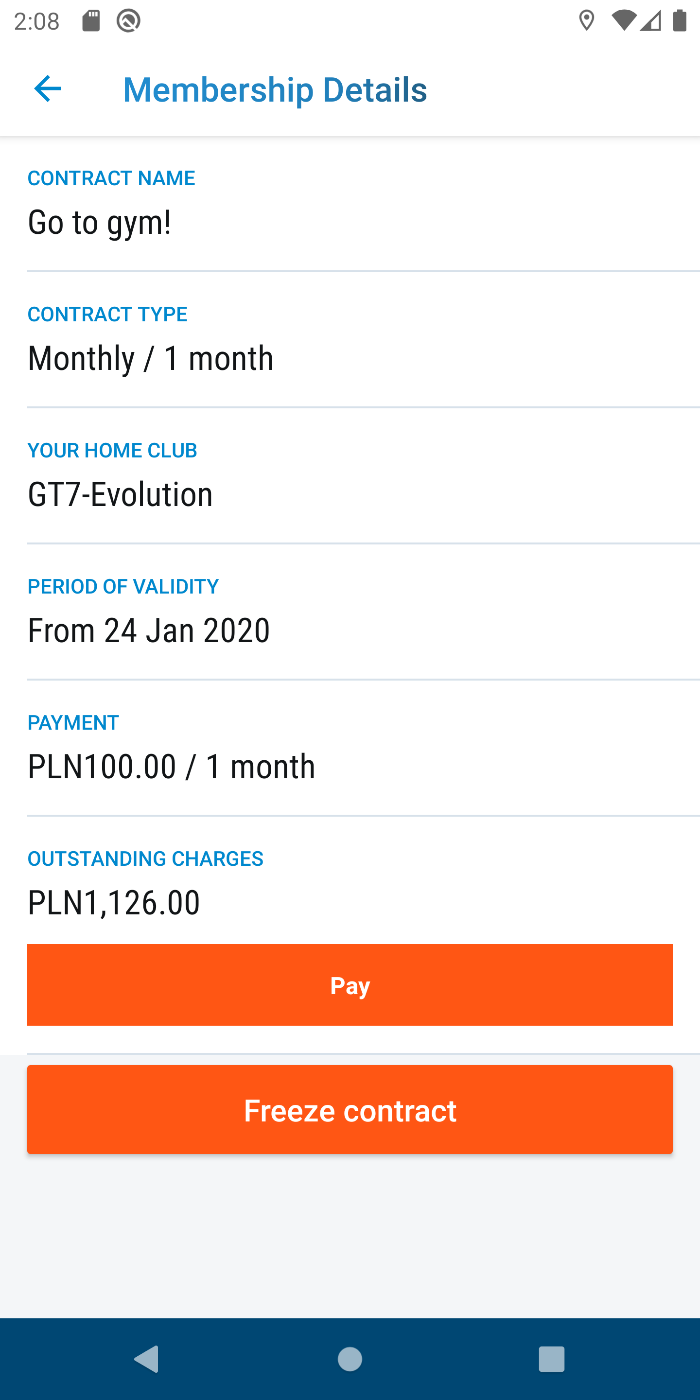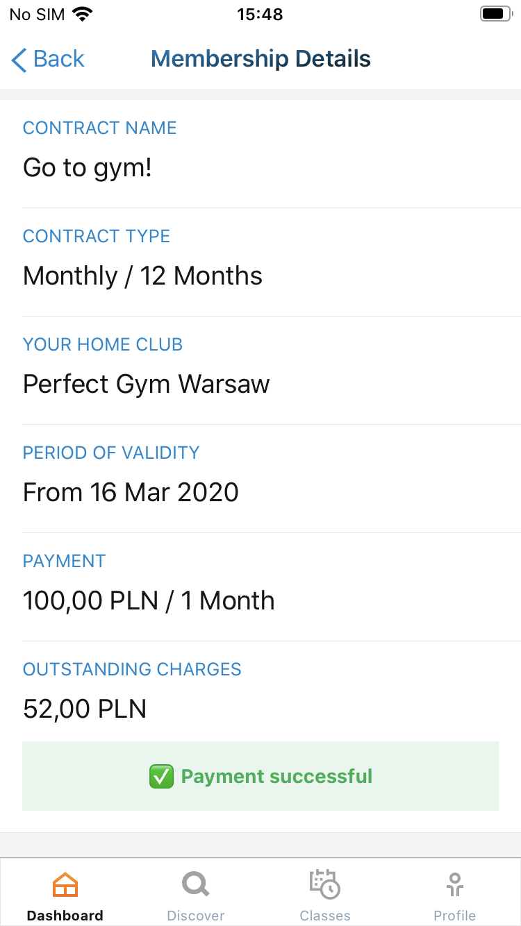3. After taping membership tile you will see your membership details and a payment button if there are outstanding charges.