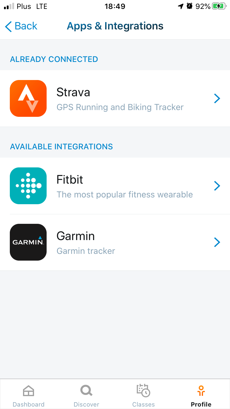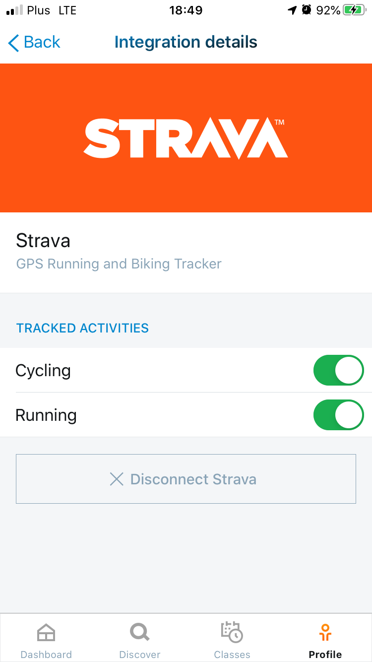 After connecting, the user can select which activities should be pushed to the PG GO app.