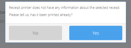 - The system will check if we have information about the receipt being printed. If not, POS will ask you to indicate whether the receipt has been printed or not.