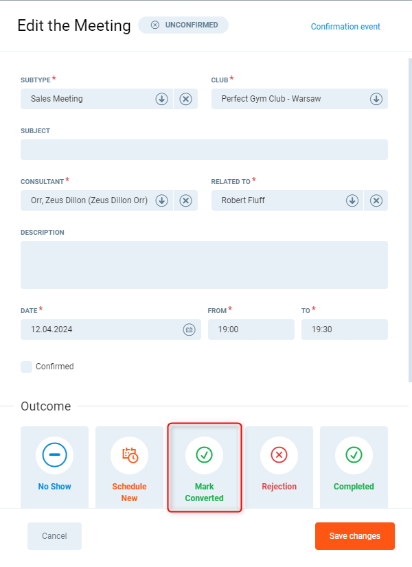 Sale button is replaced by the Conversion button. Conversion into a Member is an actual sale. Conversion into a Guest (e.g. to complete a trial training) is not a sale, but at the same time that guest is not a lead anymore.