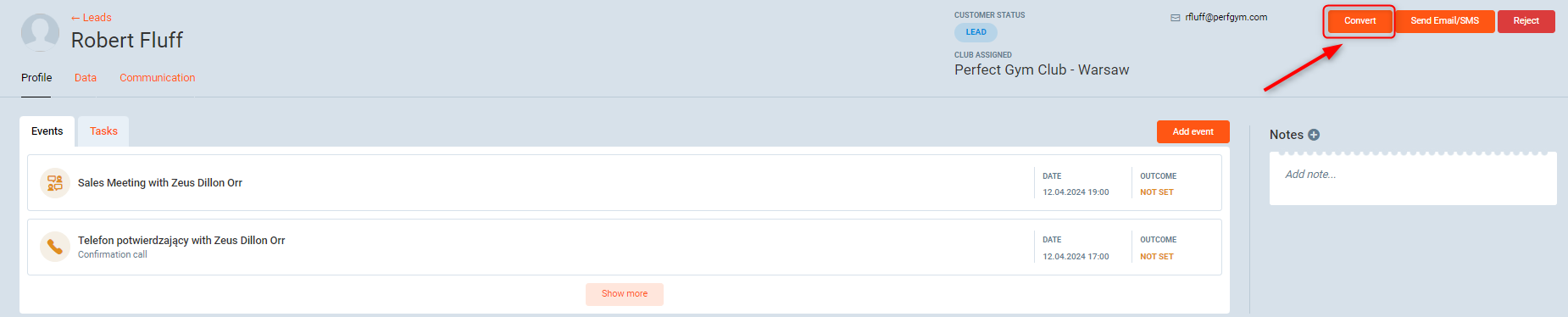 - If the lead decides to join the club or just to try it out you need to convert it to a member or a guest.