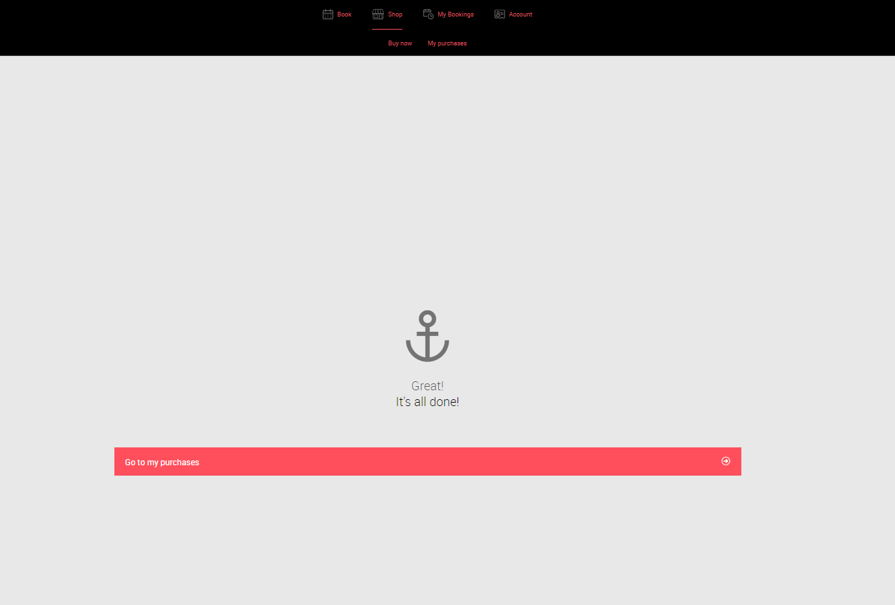 7. If all is correct and payment was completed, a message will be displayed: Great! It's all done! and you will see your products in Shop / My purchases