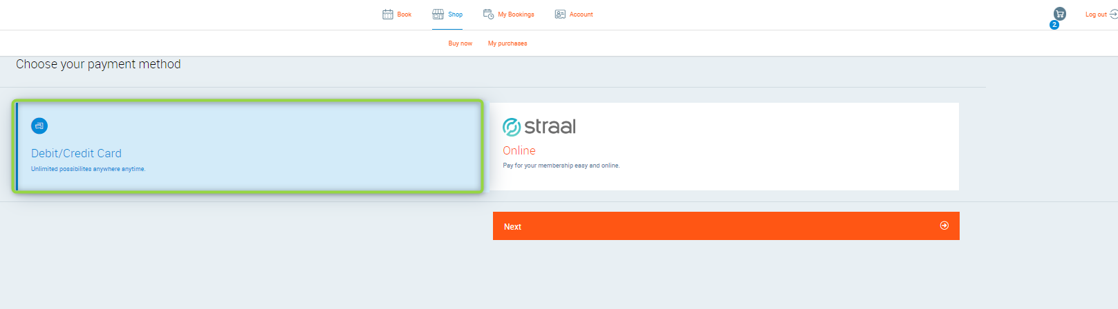 5. Chose your payment method - select Debit/Credit Card and click Next.