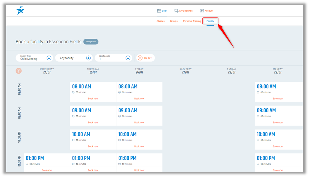 To do this, they need to log in to the Client portal and press Book then Facility.