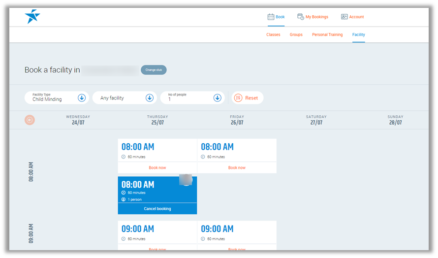 In the Client Portal, the club member can use this to book in their children to creche or other facilities.