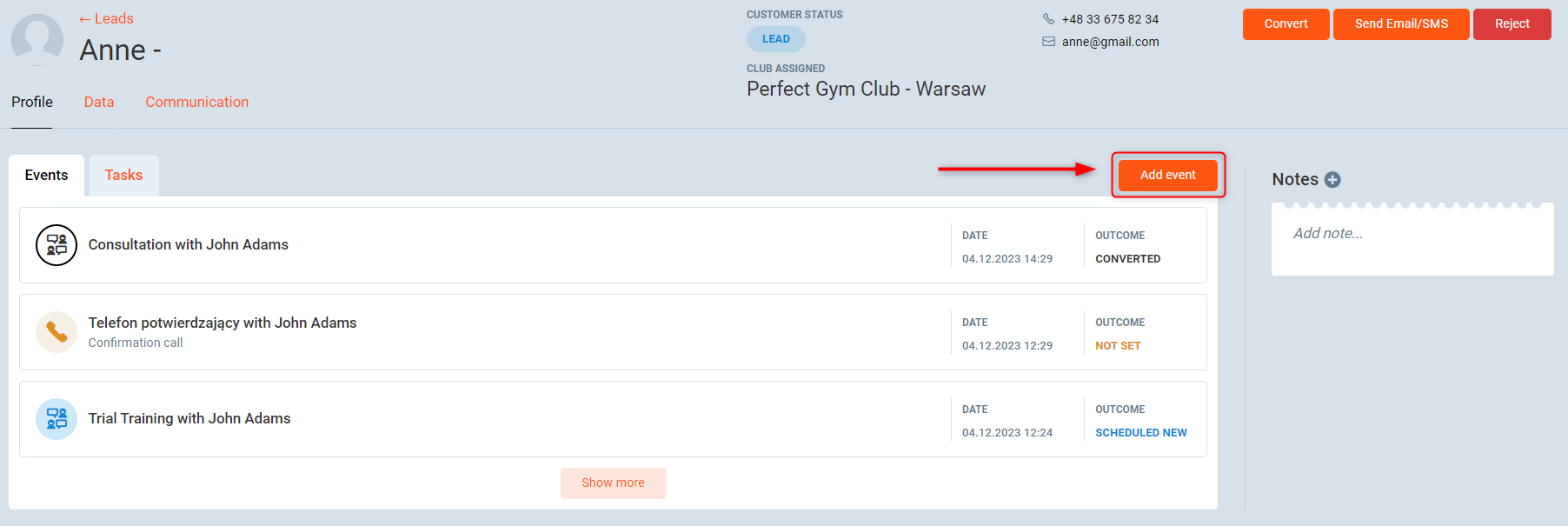 - In the Lead/Guest/Member profile - related just to that person (as per the image above)