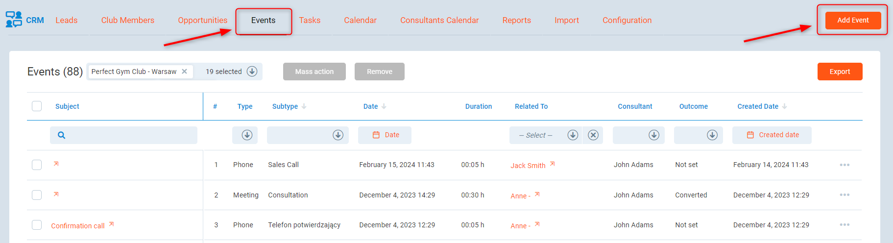 - Event subtype (e.g. Confirmation Call, Consultation Meeting) - for more effective reporting