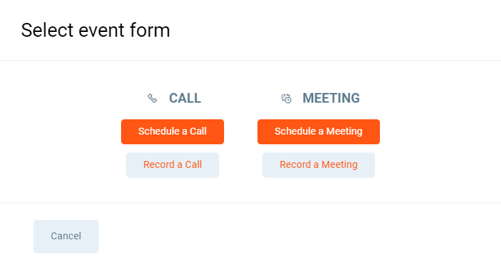 Events (meetings and calls) can be created from: