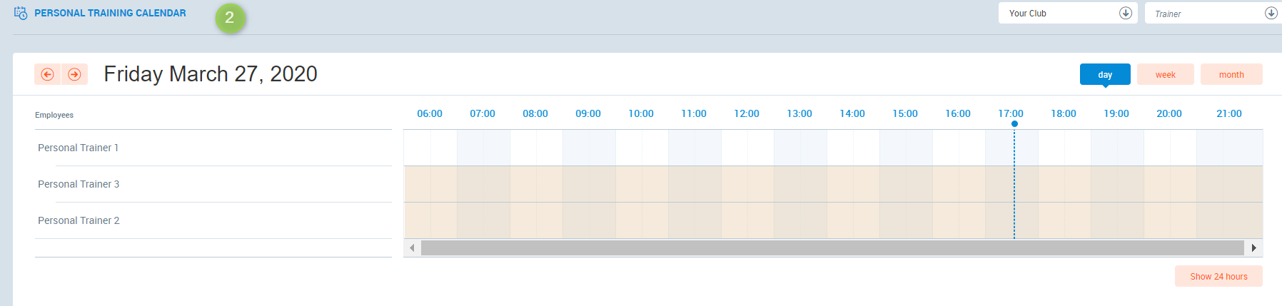 1. Go to the Classes --> Personal Training --> Personal training calendar.