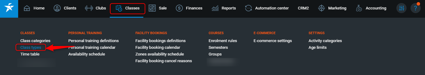 Next, Go to the PGM -> Classes -> Classes -> Class Type to create a new class on the timetable.