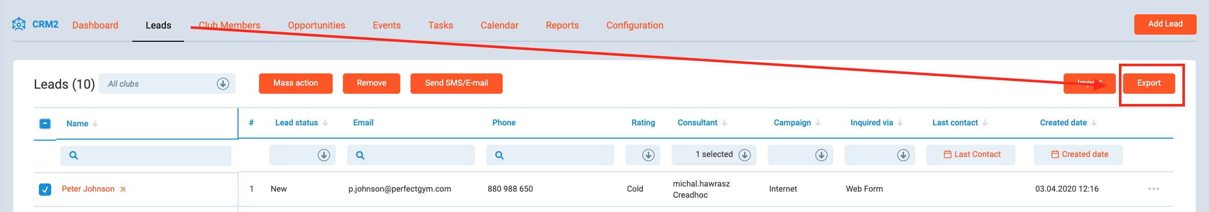 - Data export - you can export data on e.g. Leads, Events or Tasks separately to build more complex metrics in a spreadsheet