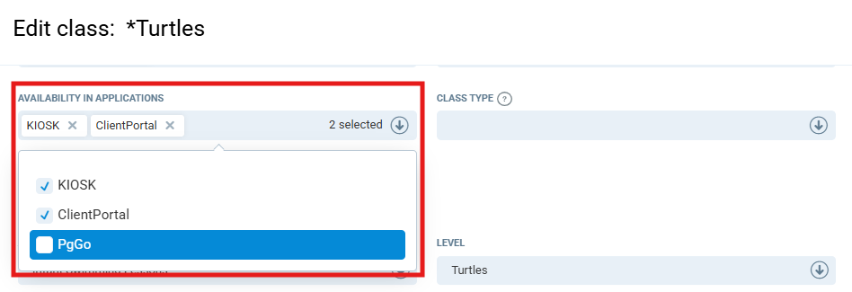 - Available for applications - Select PG GO2 to make sure your class will be visible in the mobile app.
