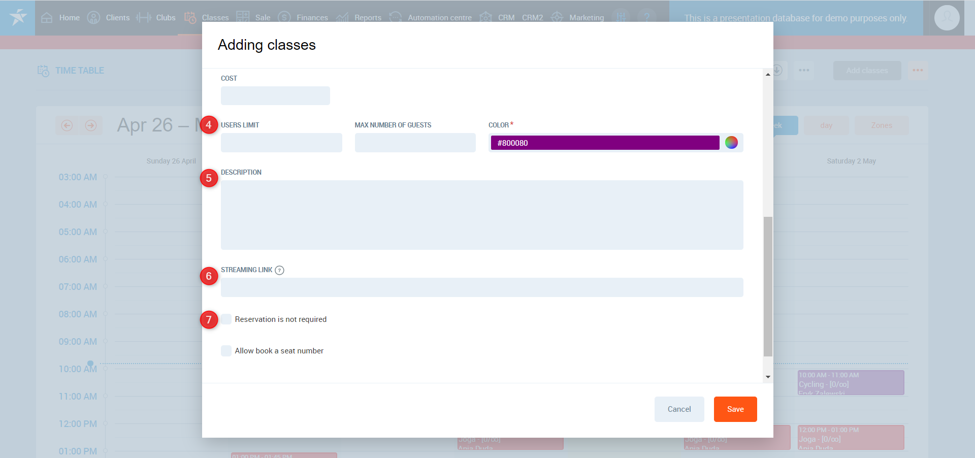 - Class Description - you can add the description of the class to provide members with more information on the class details.
