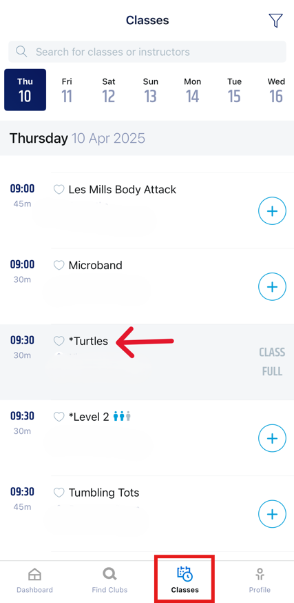 If you’d like to hide Learn to Swim classes or sporting programs (Courses) from appearing in the Classes tab, follow these steps in PGM: