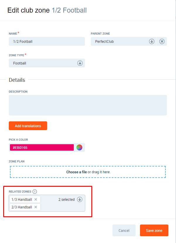1. Go to PGM-> Clubs -> Zone Types. Relationships are set up in the Zone edit form.