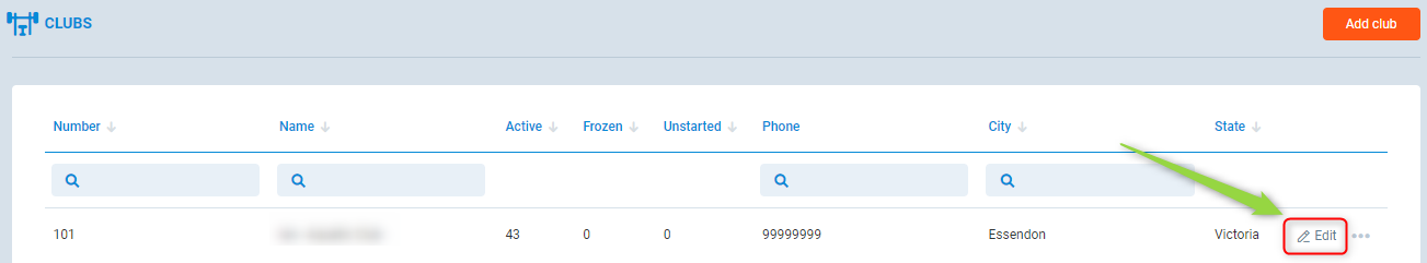 8. Click on the Edit button next to the Club name