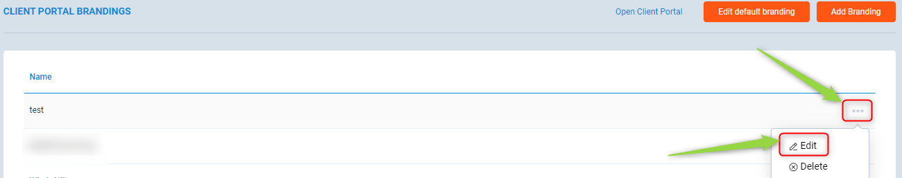 1. Click on the three dots next to one of the branding options, and select Edit
