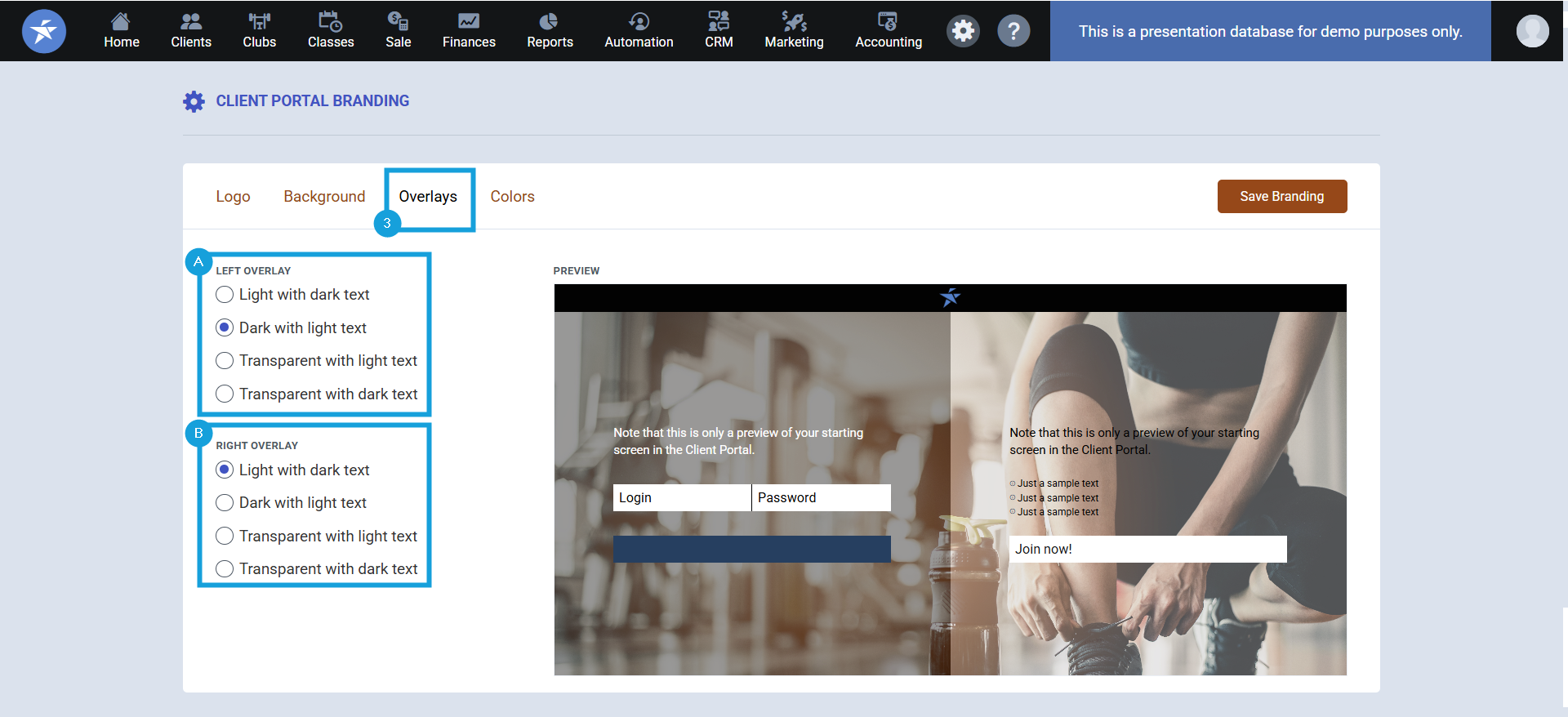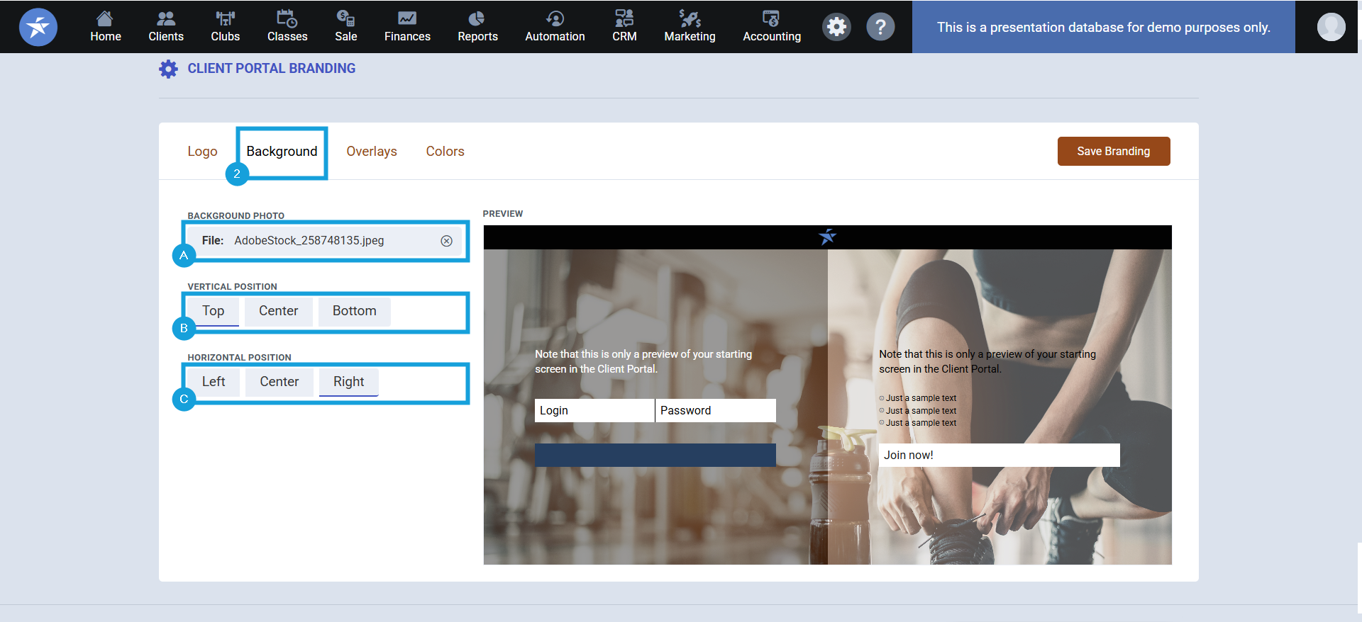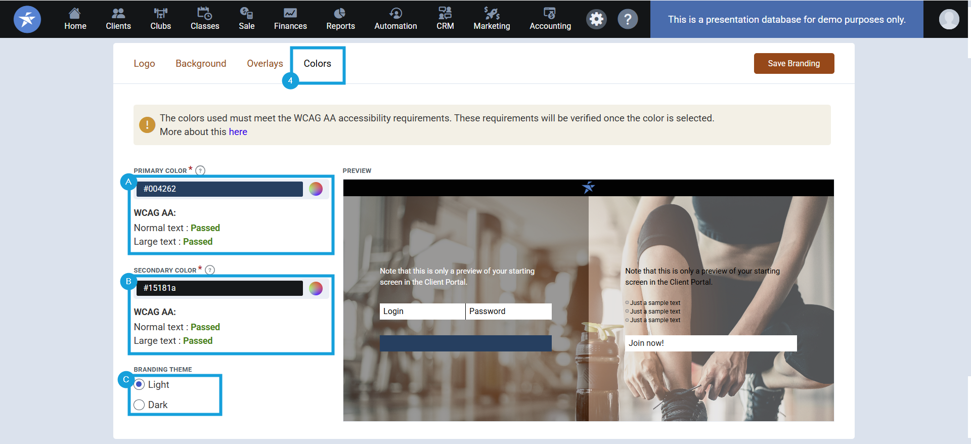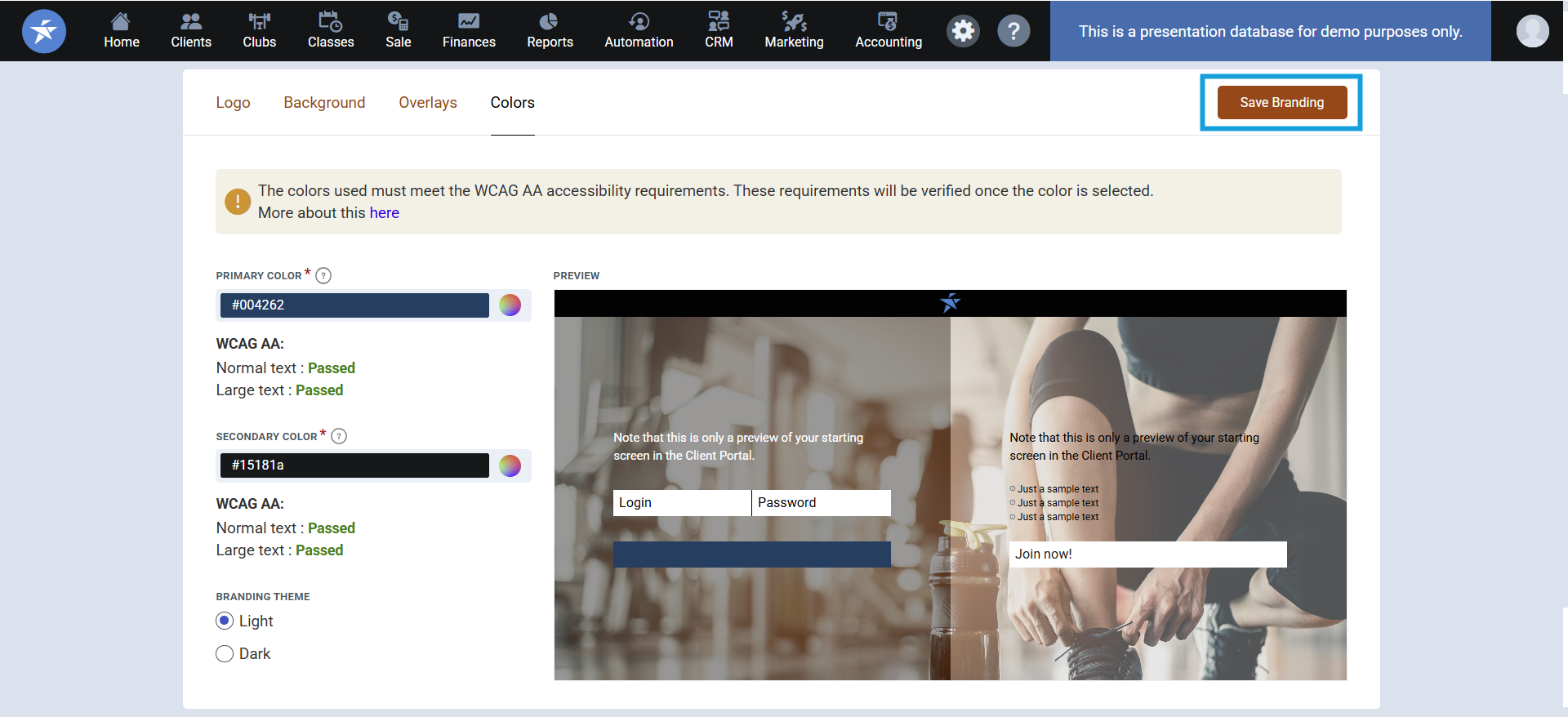 9. In the drop down next to Client Portal Branding, select the Branding name for this club
