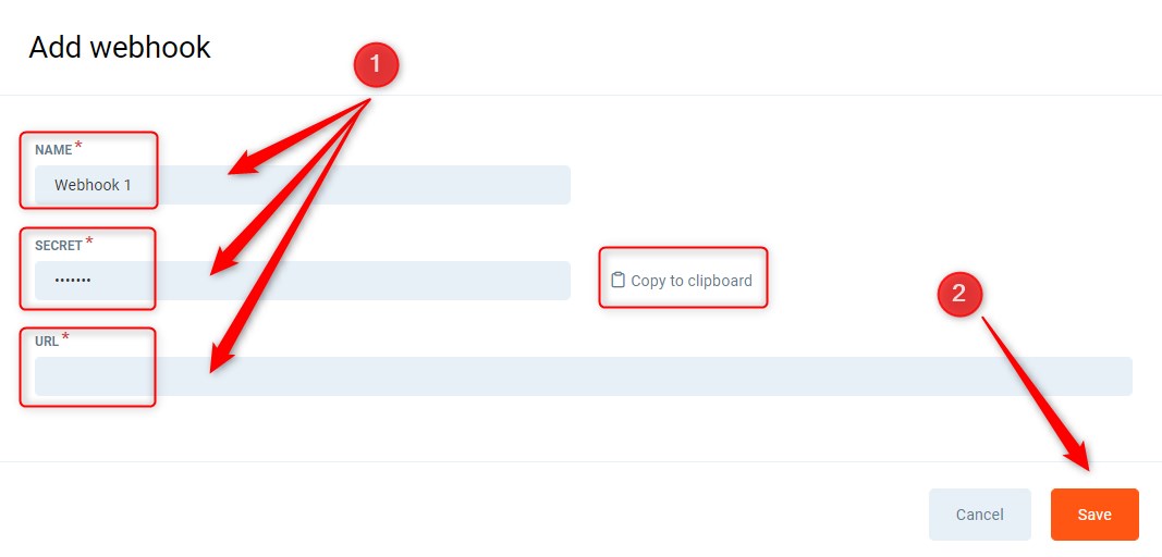 (For your convenienve you can copy the Secret to the clipboard) - URL - your (or other target) system url to be called by Perfect Gym system.