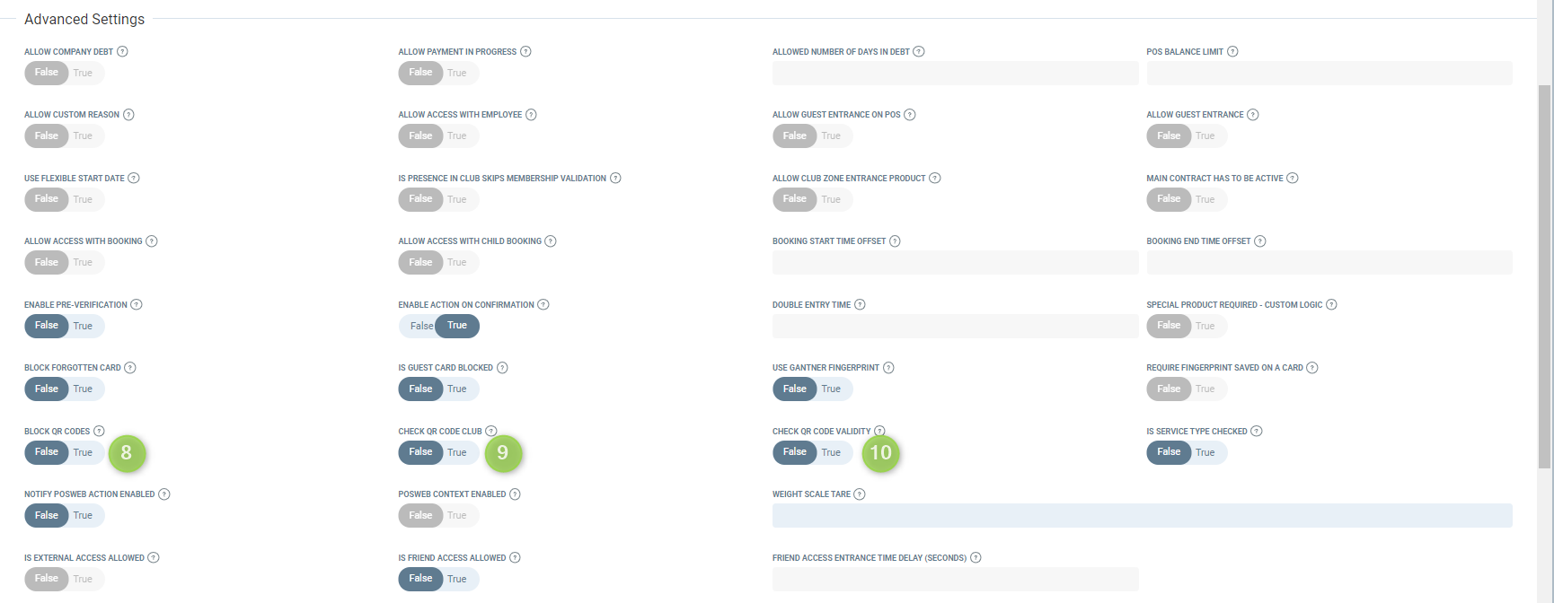- In Advanced Settings field Check QR Code Club should be set on True if you want to limit the access by club;