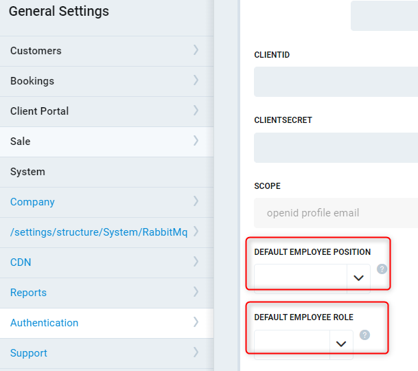 - Set the default employee position and default employee role for all new staff to be allocated on their first sign in (recommendation is to set the lowest position and role available to employees which can be changed to the employee's correct role at a later time).