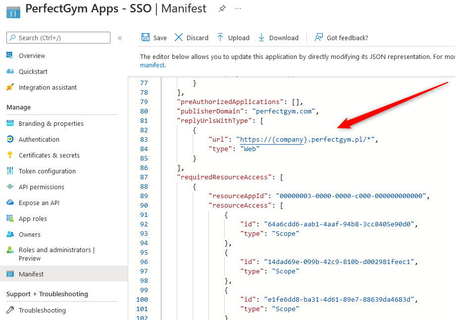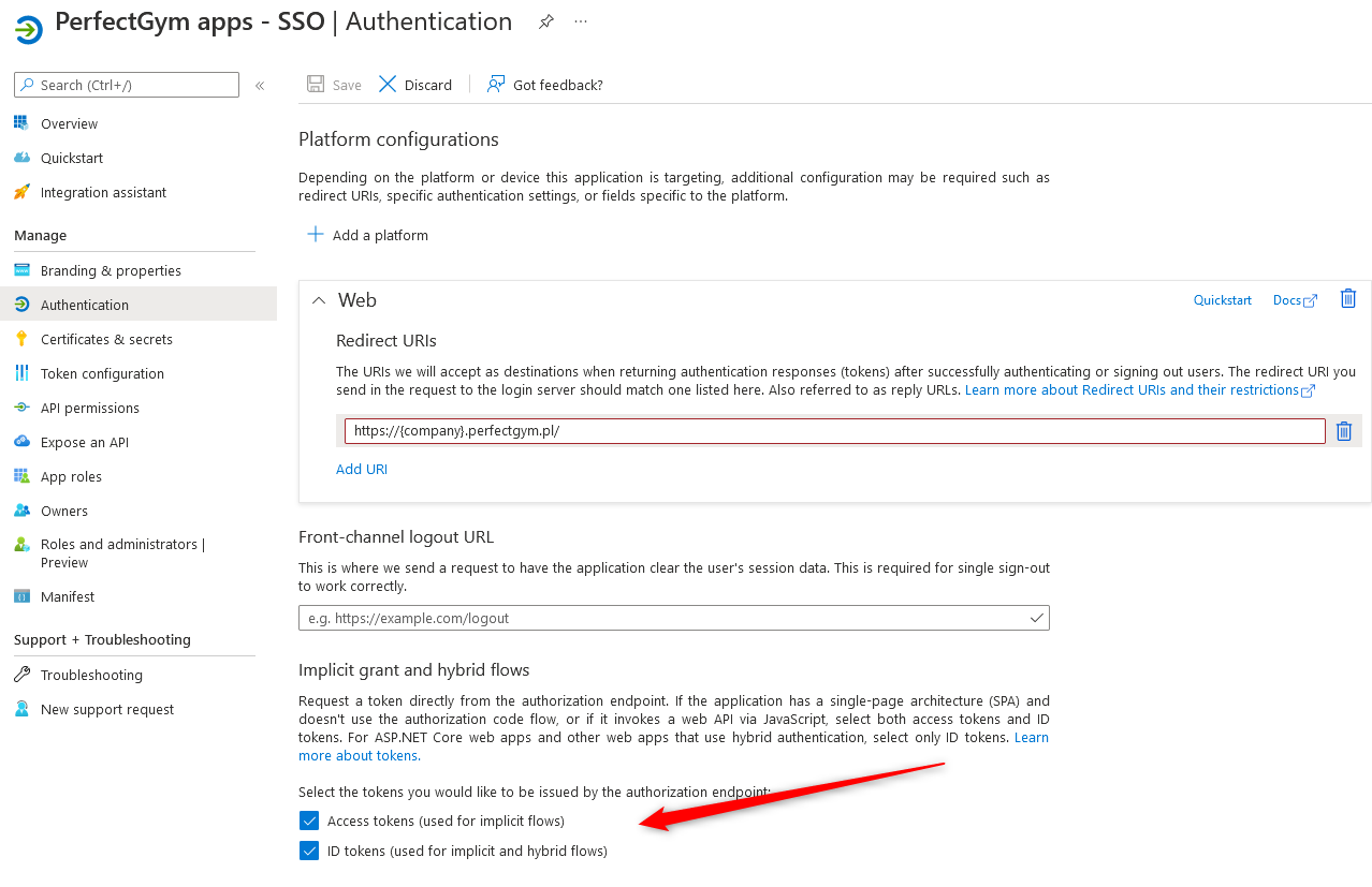 The list of used callback redirect URLs (can be used instead of wildcard):- https://{company}.perfectgym.com/Pgm/Account/EntraIdResponseHandler