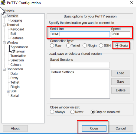 - Putty - start the application, set the COM port and speed e.g. 9600 and scan the barcodes that will appear in the console.