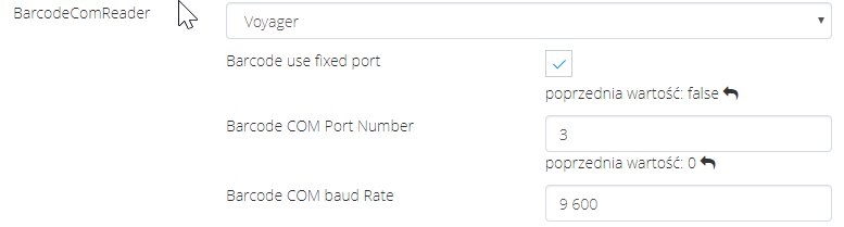- In POSweb, set the barcode scanner to Voyager, select the COM port under which it is connected (you can check it in the device manager or control panel) and save / restart DI.