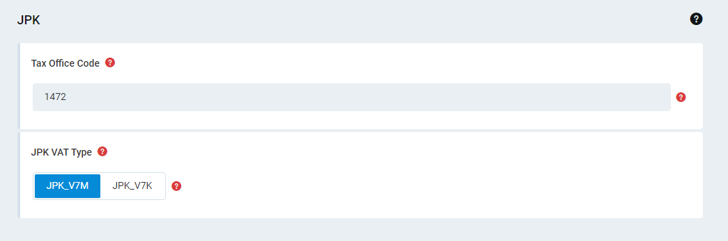 - JPK V7 variants require that you set up the Tax Office Code using this setting "Legislation.PL.JPK.JpkVatType".