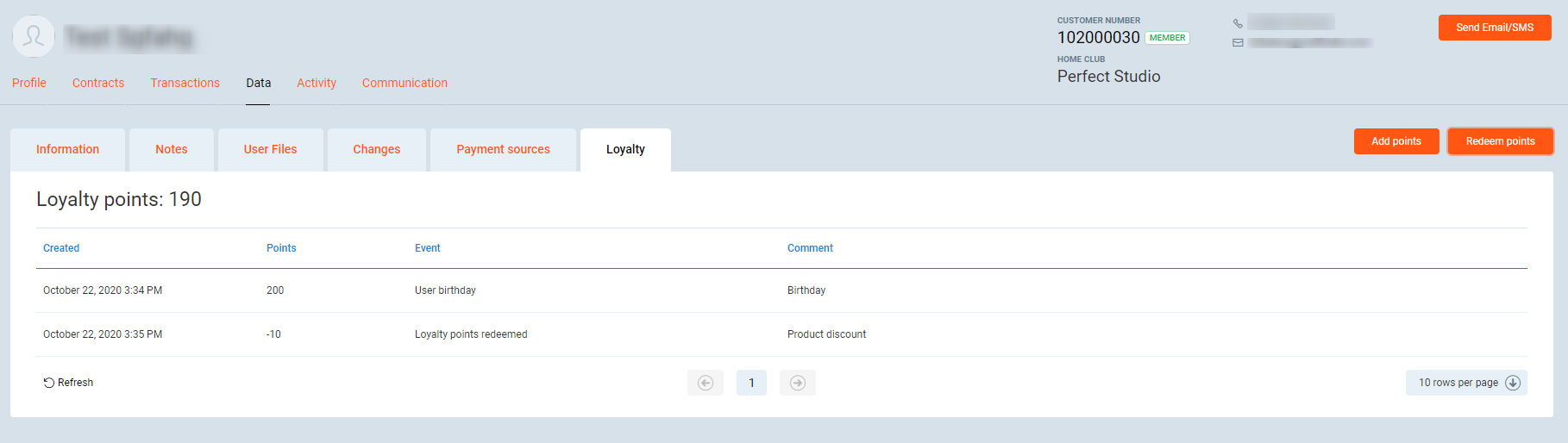 4. Click on the Add points button, or Redeem points button to manage member's points.