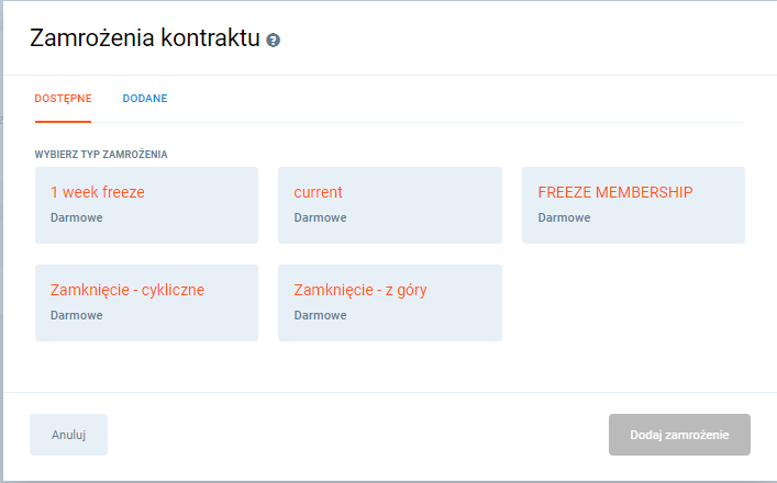 - W opcjach "Wybierz typ zamrożenia” brakuje wybranego przez Ciebie typu zamrożenia, np. nie ma zamrożenia o nazwie „Koronawirus”.
