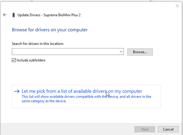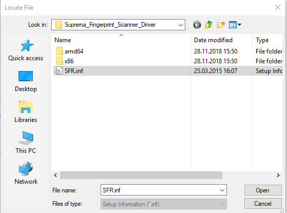 Default path is C:\Program Files (x86)\Suprema\Suprema_Fingerprint_Scanner_Driver