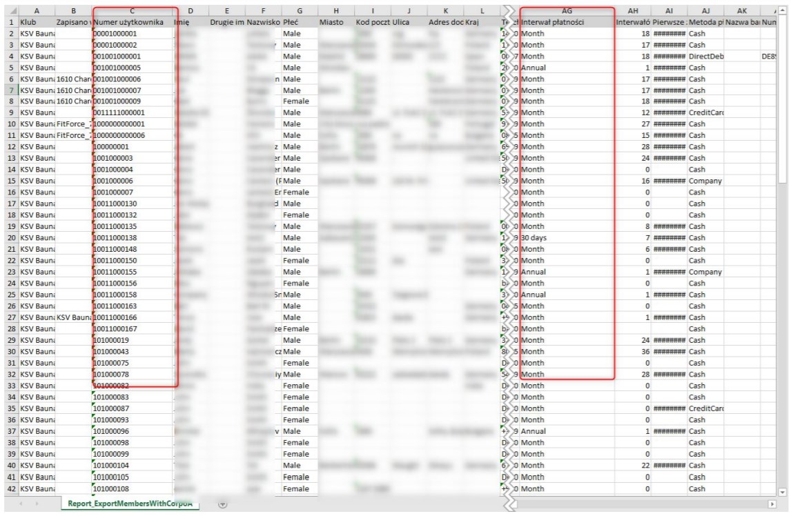 - W kolumnie B - numer_użytkownika zostanie skopiowany z list utworzonych w raportach.