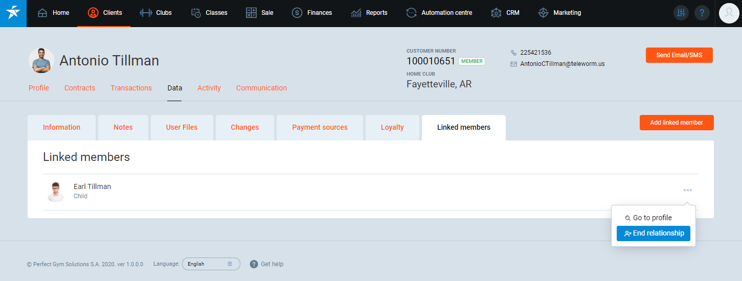 5. Click on the Add linked member button to add a relation with an existing member or add a new customer.