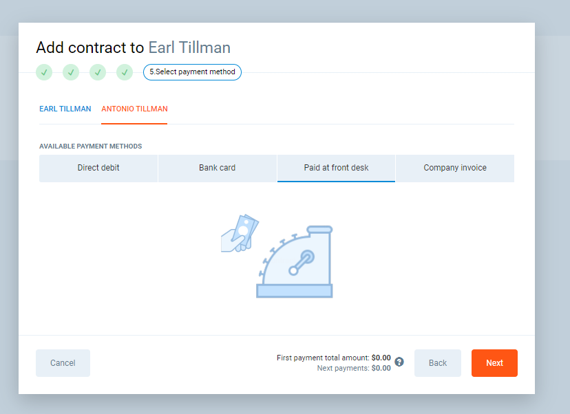 When a relation between members exist, you can set up payment relation, so that one member (i.e. Parent), could pay for a related member's contract (i.e. Child's contract). You have access to both wallets in payment source step when adding/editing contract.