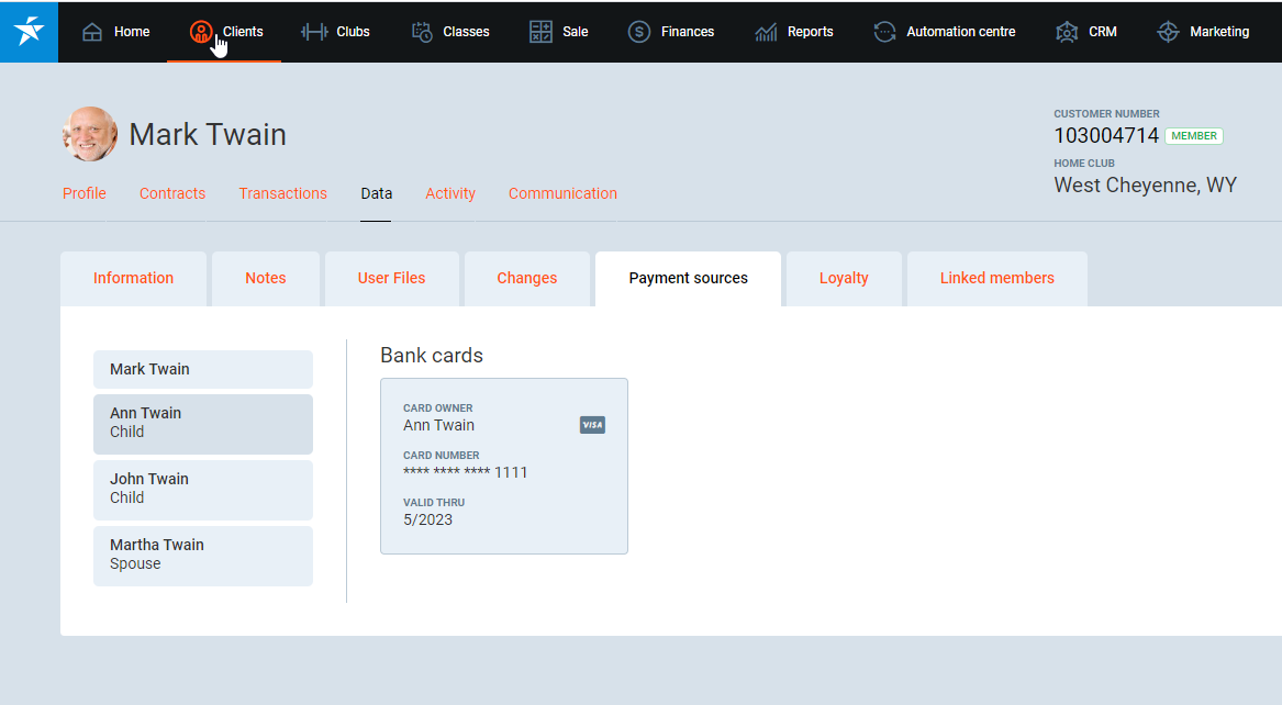 All payment sources of related members are also visible in the Payment sources tab in the Member Profile.